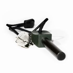 Apresento-vos o FireSteel, é como que a pedra que os isqueiros têm que se usa para produzir faísca mas em tamanho grande. Os da Light My Fire têm uma vida de cerca de 3.000 utilizações e mais algumas e além disso podem ser mergulhados debaixo de água, quando retirados estão prontos a funcionar.